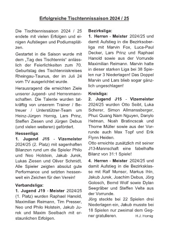 endete mit vielen Erfolgen und ei- 1. Herren - Meister 2024/25 und